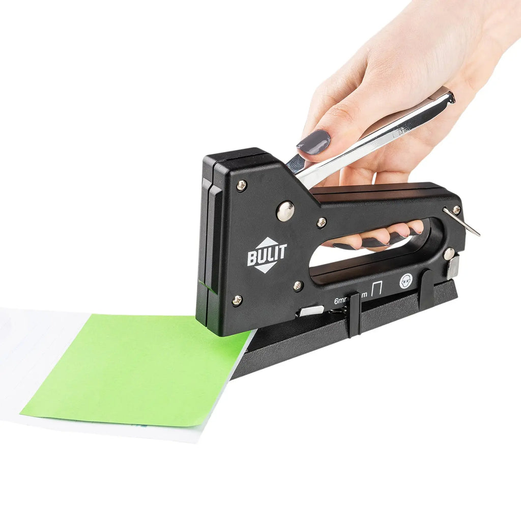 - Su base removible permite utilizar el producto como abrochadora y también como engrampadora, siendo de gran utilidad en la oficina y el hogar.