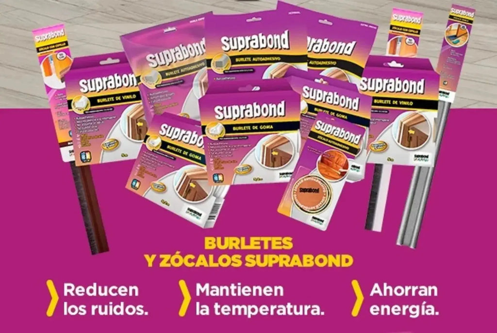 - Los burletes de goma Suprabond están fabricados con caucho EPDM, lo que les otorga un gran poder de absorción de golpes, máxima resistencia a la intemperie y gran durabilidad.