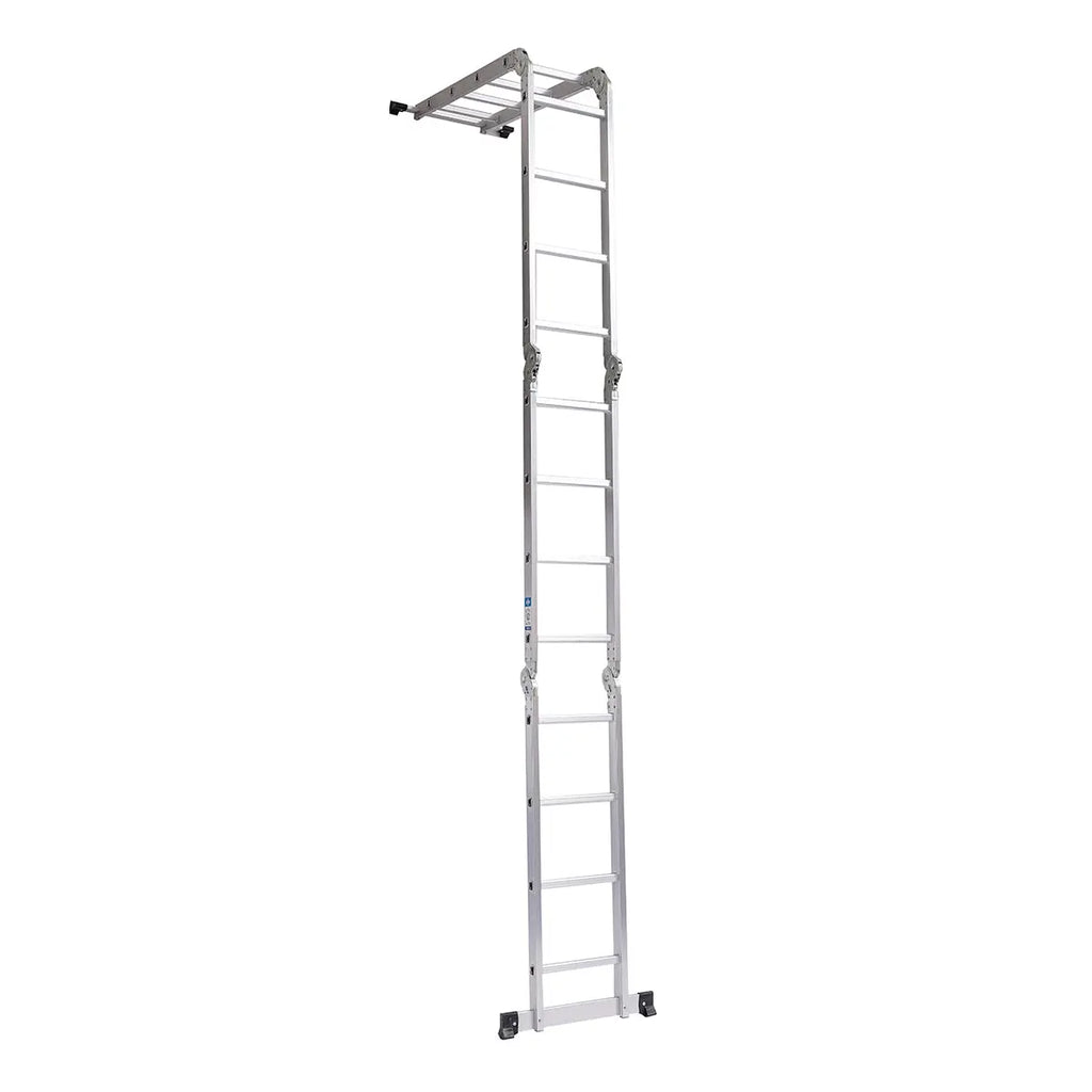 - Escaleras versátiles que pueden adaptarse a diferentes configuraciones y usos. Su diseño flexible las convierte en herramientas muy prácticas tanto para trabajos en el hogar como en el ámbito profesional. Cumplen con los estándares de la normativa EN 131, la cual asegura su eficacia y seguridad para su uso en diversas aplicaciones.