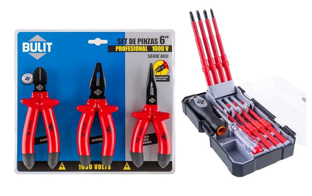 - Set profesional de destornilladores aislados y certificados bajo la norma europea DIN IEC 60900 (homologadas por VDE)
