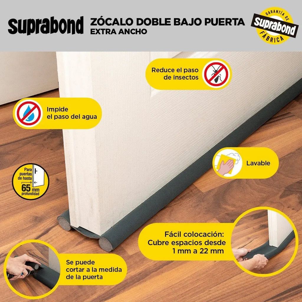 - Ideal para cubrir espacios entre la puerta y el piso ("luz") de hasta 22 mm.